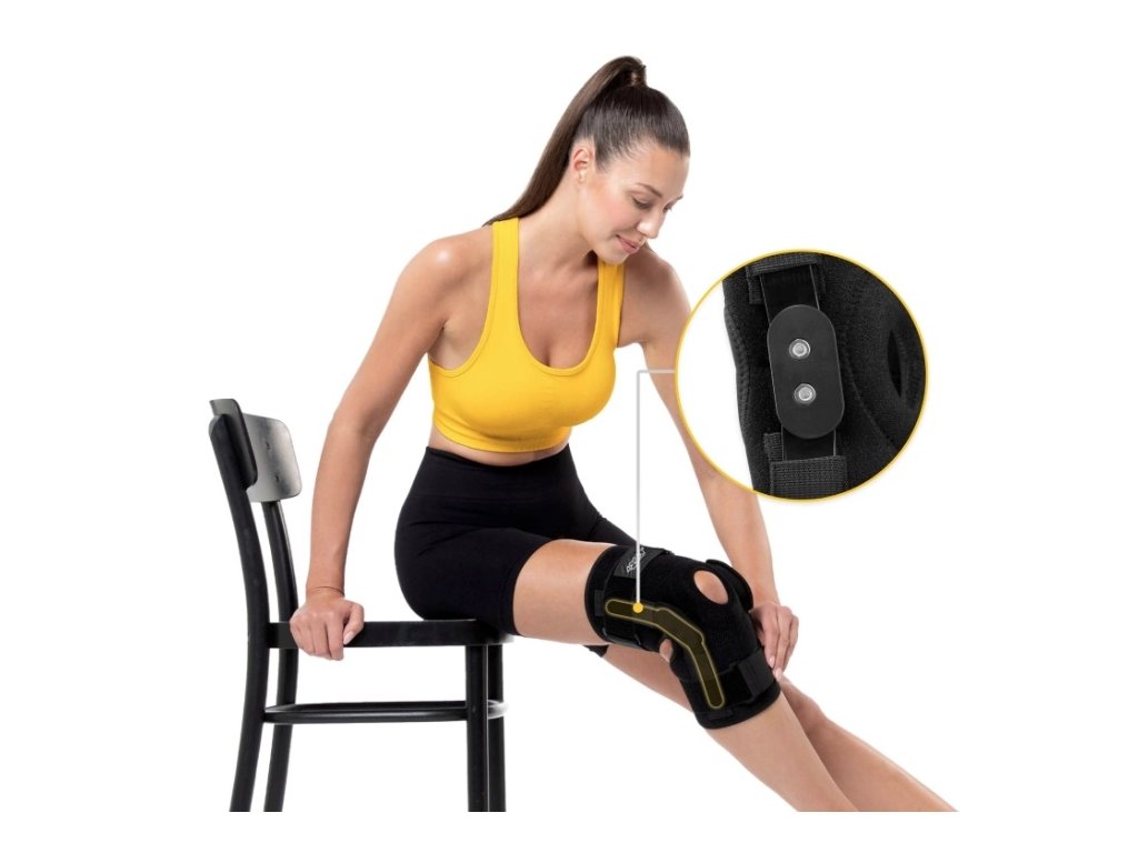 Kolenní ortéza má dvě boční kovové dlahy. Podporují stabilizaci kolena, zejména postranního vazu. Dlahy jsou pohyblivé, takže s touto ortézou můžete snadno chodit, dřepovat nebo chodit po schodech. Měkký gelový kroužek udržuje čéšku ve stabilní poloze a chrání před nekontrolovanou rotací. Kolenní ortéza podporuje rehabilitační proces, což snižuje riziko prohloubení zranění a podporuje rychlejší návrat do plné kondice.
