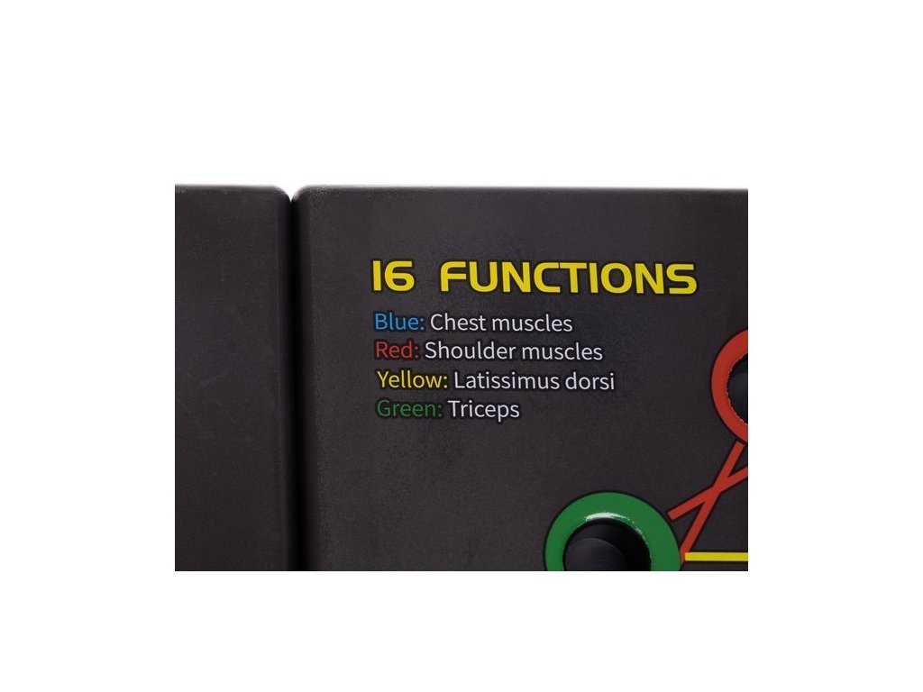 Multifunkční deska s až 16 různými nastaveními úchopu umožňuje během cvičení pracovat s mnoha svalovými skupinami.