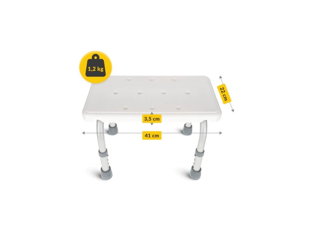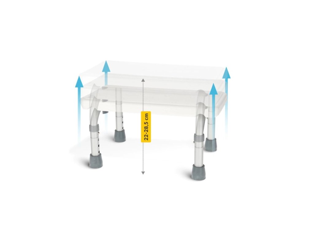 Lze použít jako schůdek pro snadnější vstup do vany, sprchovou stoličku nebo opěrku nohou.