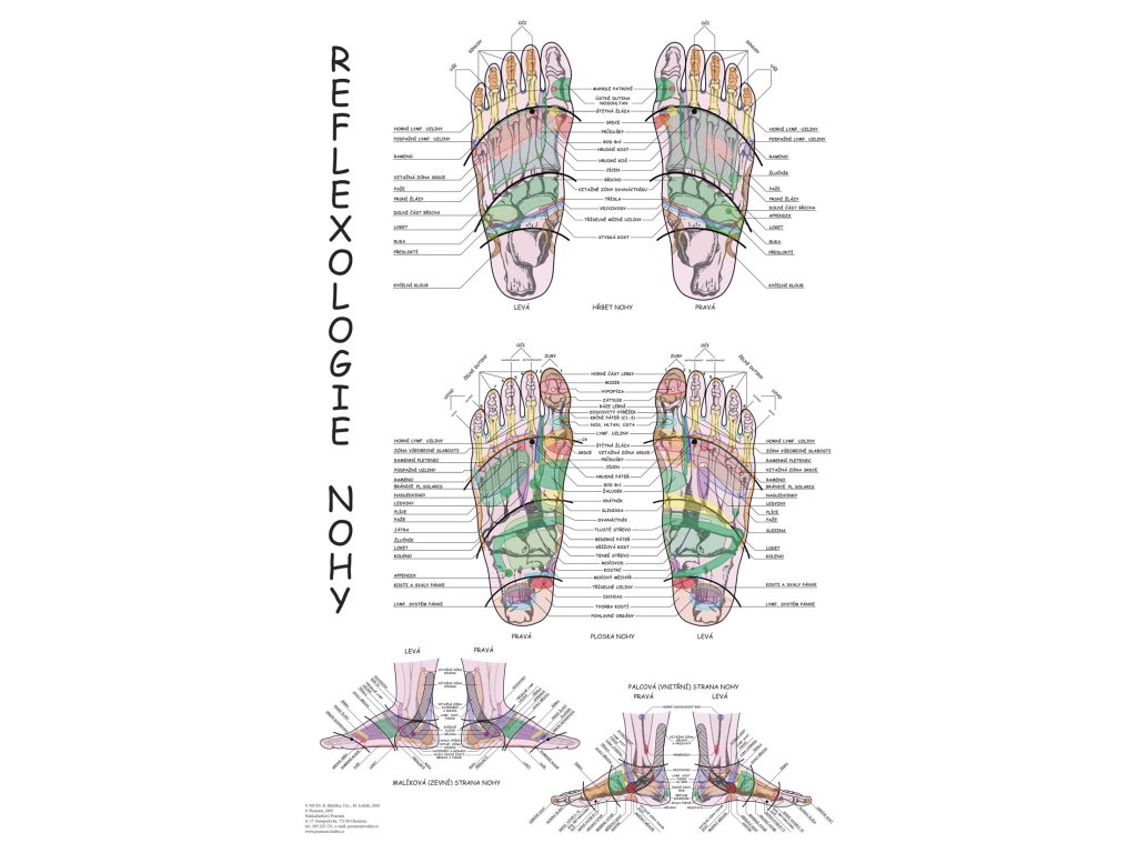 Reflexologie je forma masáže chodidel na tělesných meridiánech neboli energetických dráhách, která prospívá celému tělu. Tato mapa vám pomůže lépe jednotlivé body na chodidlech najít a rozeznat. Obsahuje podrobný popis bodů a jejich vlivů na vnitřní orgány. Je to jedna z map snad nejznámějšího českého autora a lékaře zabývajícího se čínskou medicínou a akupunkturou.