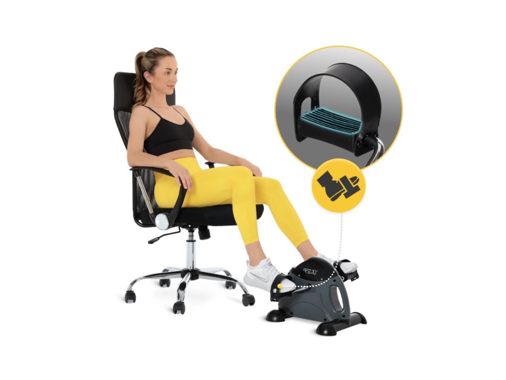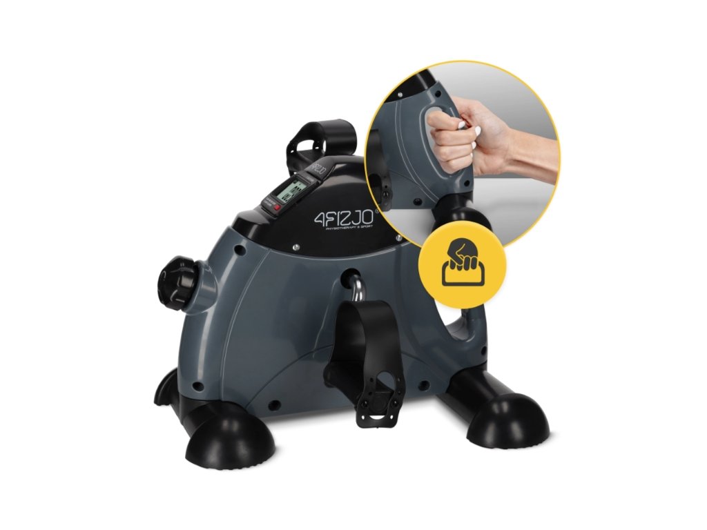 Rehabilitační rotoped je ideální pomůckou pro domácí cvičení i rehabilitaci. Díky kompaktním rozměrům, nízké hmotnosti a praktické rukojeti jej snadno přenesete kamkoliv. Umožňuje efektivní trénink svalů nohou i rukou, zlepšuje krevní oběh, posiluje svaly a podporuje celkovou kondici. Stabilní konstrukce, protiskluzové pedály a plynule nastavitelný odpor zaručují bezpečné a pohodlné cvičení. Integrovaný počítač sleduje čas, vzdálenost, kalorie i počet otáček, takže máte svůj pokrok vždy pod kontrolou.