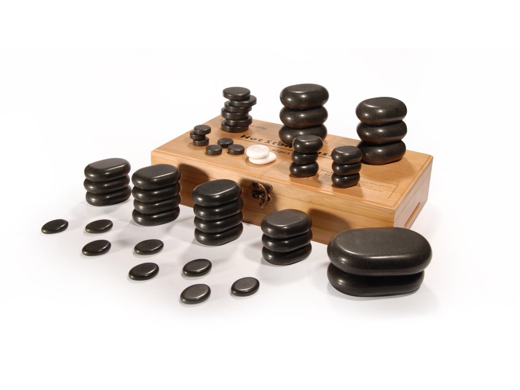 Kompletní sada kamenů, která obsahuje lávové kameny, studené a čakrové. Vše v elegantní bambusové krabičce.