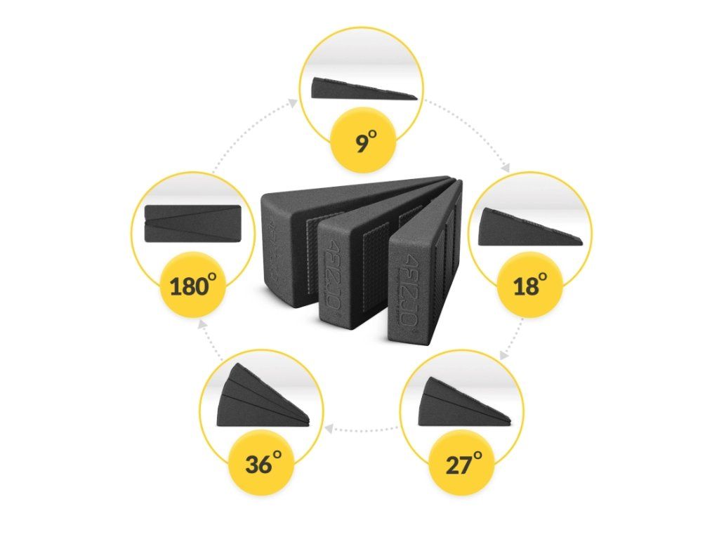 Součást balení: 2 klíny se sklonem 9° (150 × 320 mm) a 1 klín se sklonem 18° (150 × 320 mm)
