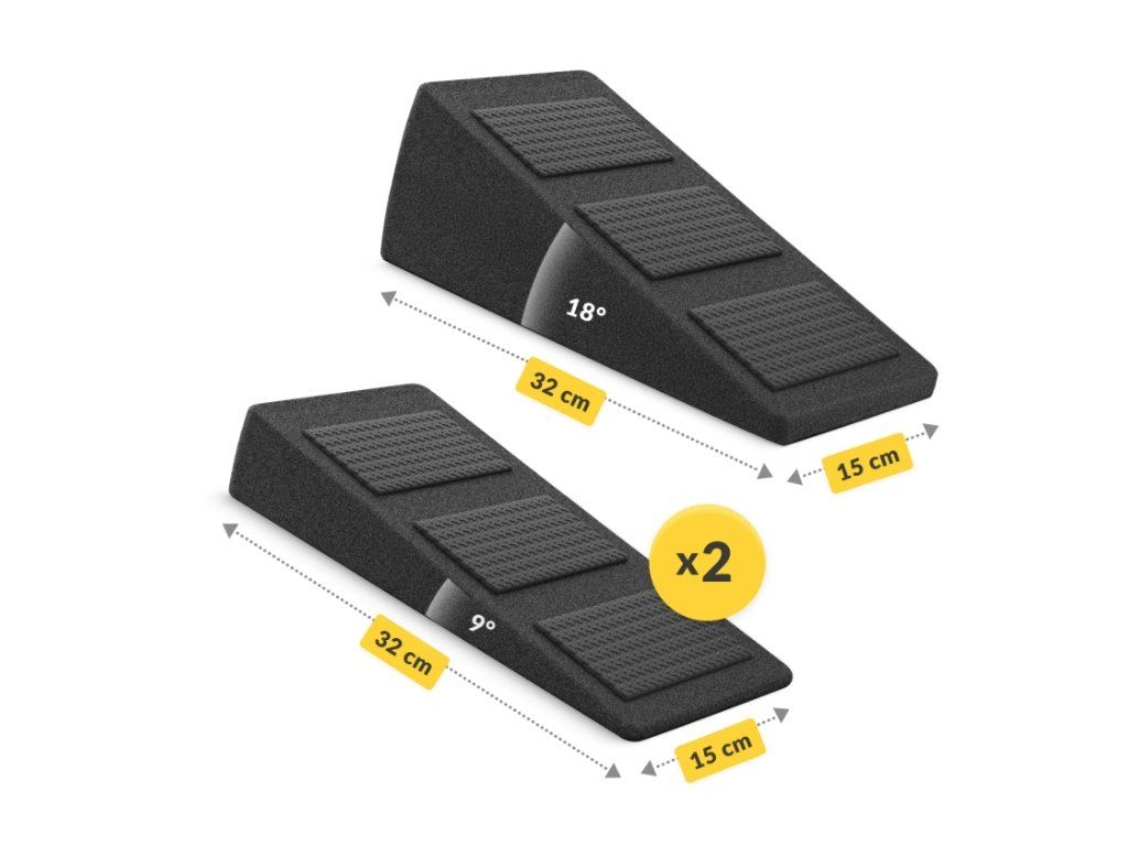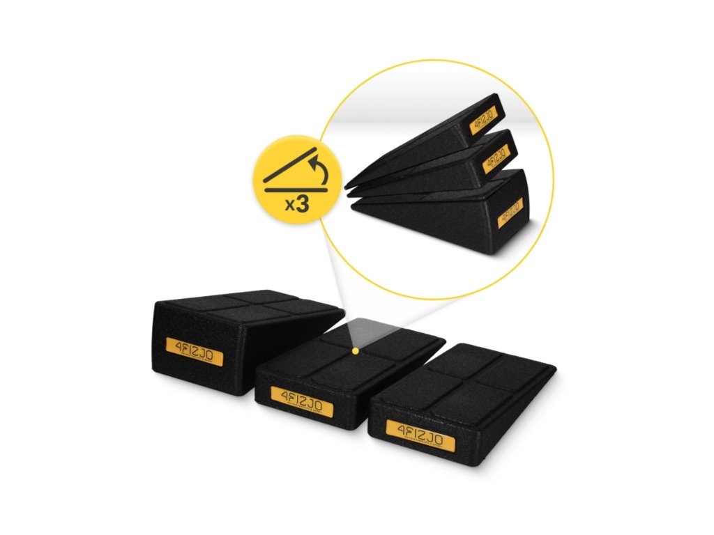 Klín je vhodný pro domácí použití i do posilovny a umožňuje různé úrovně náročnosti – přidáním jednoho, dvou nebo tří klínů můžete zvýšit intenzitu cvičení. Kromě protahování lýtek podporuje i silový trénink nohou, například výpony a dřepy s přídavným závažím, přičemž pravidelné protahování snižuje riziko zranění.