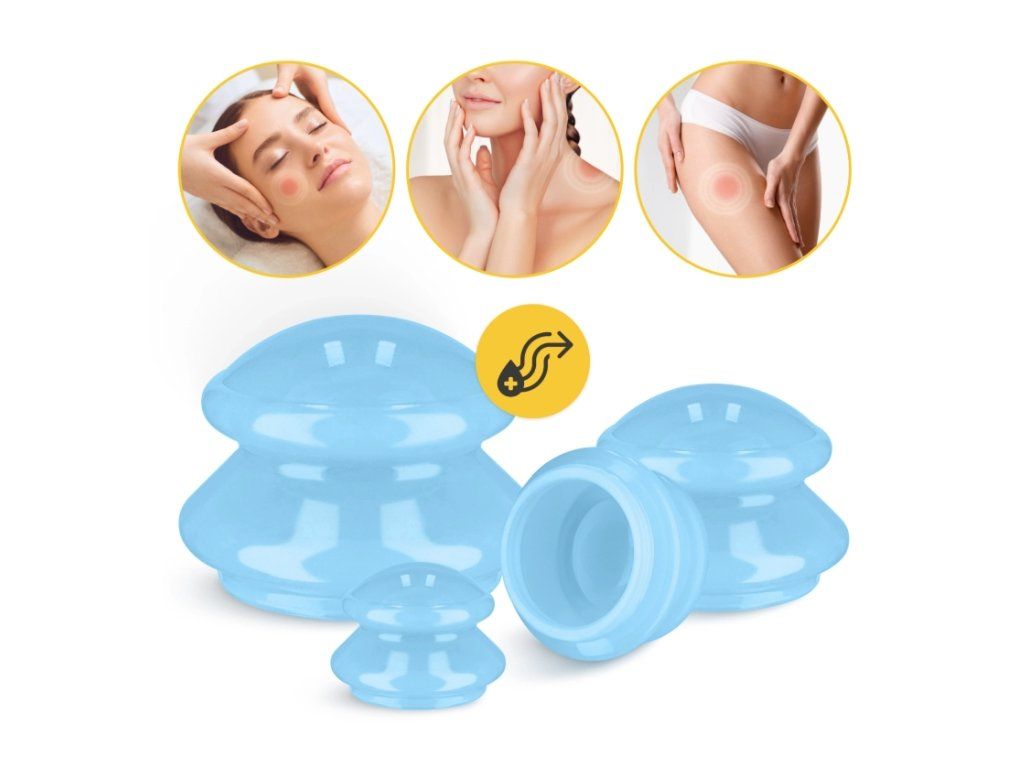 Sada silikonových čínských masážních baněk MED+, modrá