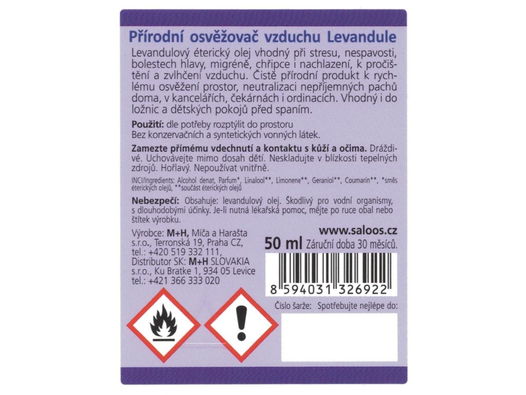 Levandulový éterický olej patří k silicím s nejširším možným využitím. Vhodná je při napětí, stresu, nachlazení, bolestech hlavy i migréně. Je známá svými antiseptickými a zklidňujícími účinky. Čistě přírodní produkt k rychlému osvěžení prostor, neutralizaci nepříjemných pachů doma, v kancelářích, čekárnách, ordinacích atd. Vhodná je i do ložnic a dětských pokojů před spaním. Podpoří usínání a klidný spánek.