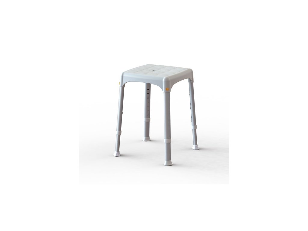 Jednoduchá, lehká praktická židlička do sprchy. Rám hliníkový, eloxovaný, výškově nastavitelný. Protiskluzové nástavce.