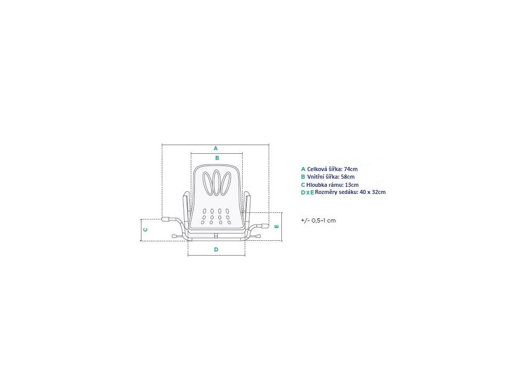 Otáčecí duralový mechanismus s aretací otáčení ve 4 pozicích po 90 stupňů. Nastavitelná dle typu (šířky) vany. Sedátko z odolného plastu s otvory pro odtok vody.