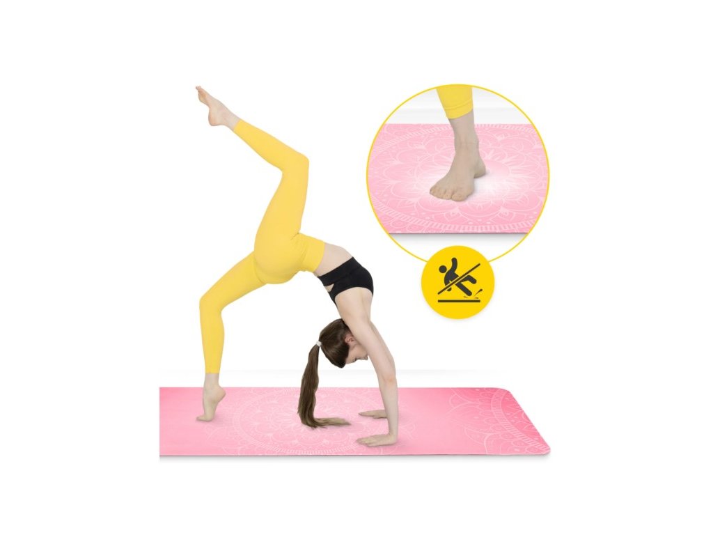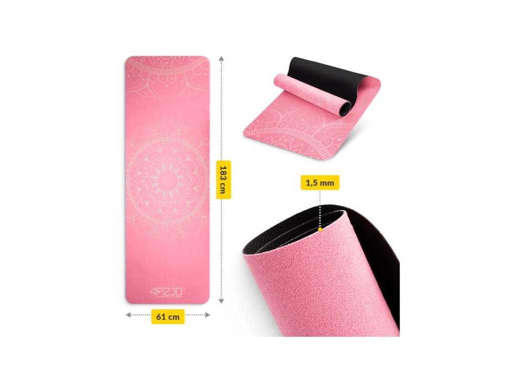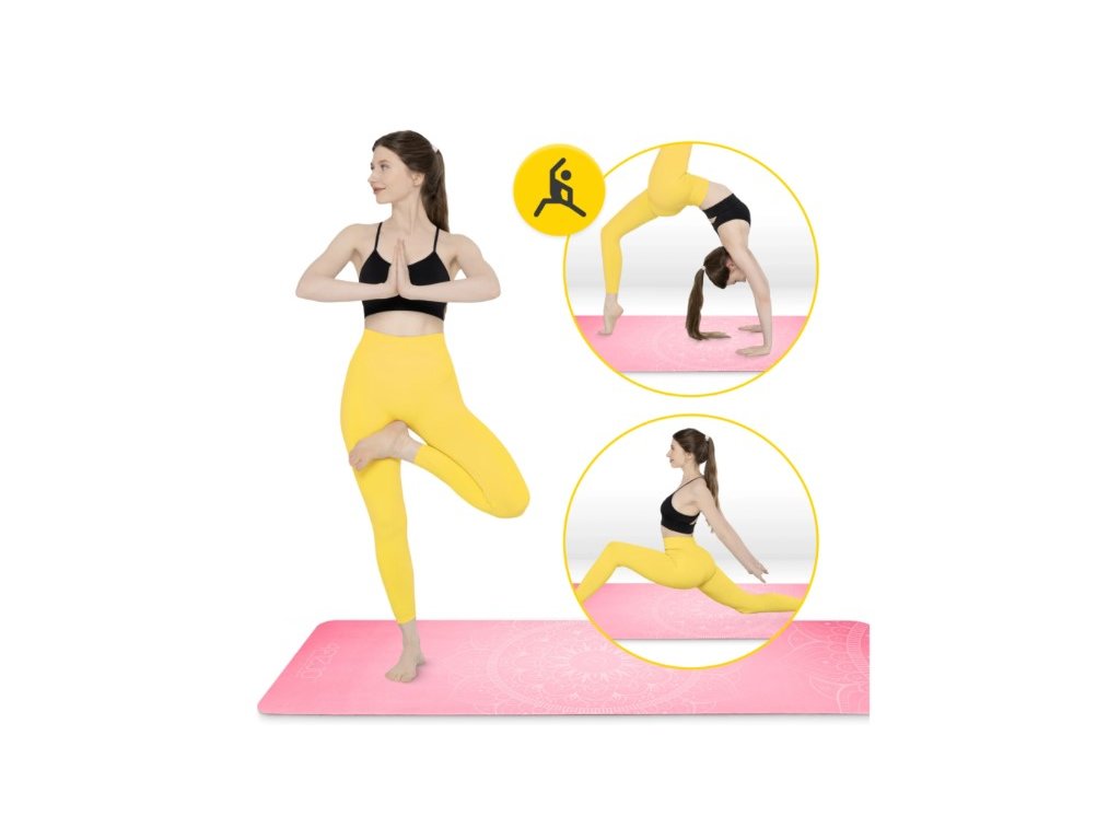 Semišová podložka na jógu a cvičení růžová, 183 cm x 61 cm x 1,5 mm