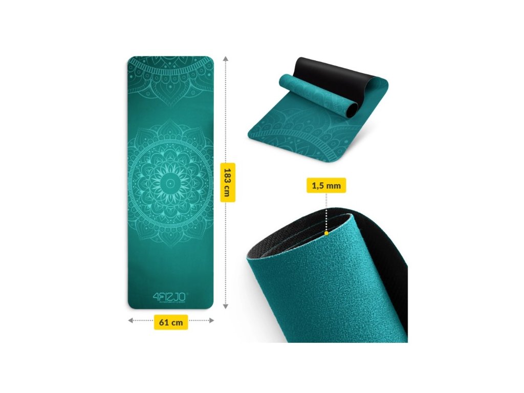 Semišová podložka na jógu a cvičení zelená, 183 cm x 61 cm x 1,5 mm