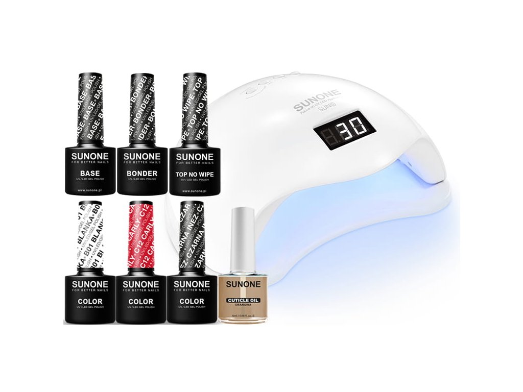 Díky vhodné síle lampy SUN5 se laky SUNONE na nehty rychle vytvrdí. Dokonalá manikúra a pedikúra? Je to možné díky kombinaci produktů ze sady.