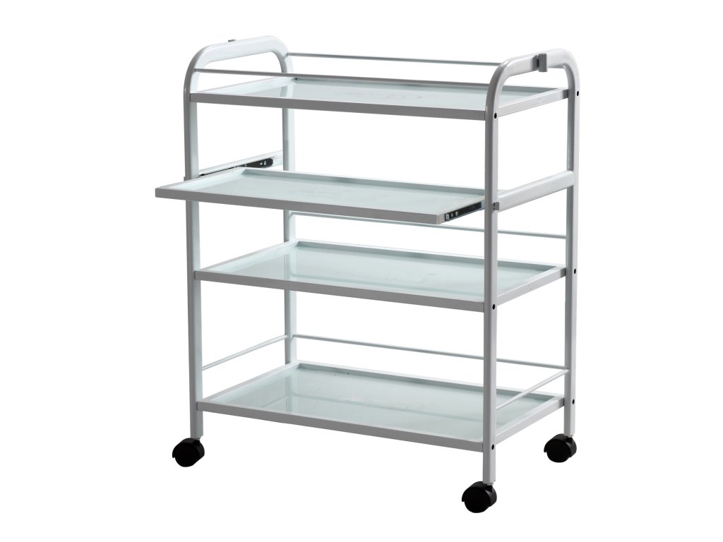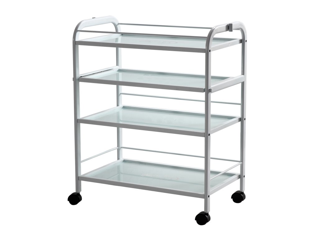 Pěkně zpracovaný stolek se čtyřmi skleněnými policemi.