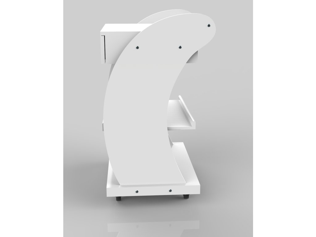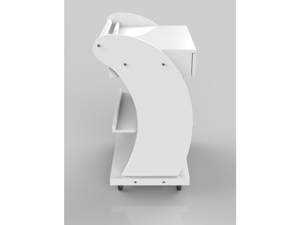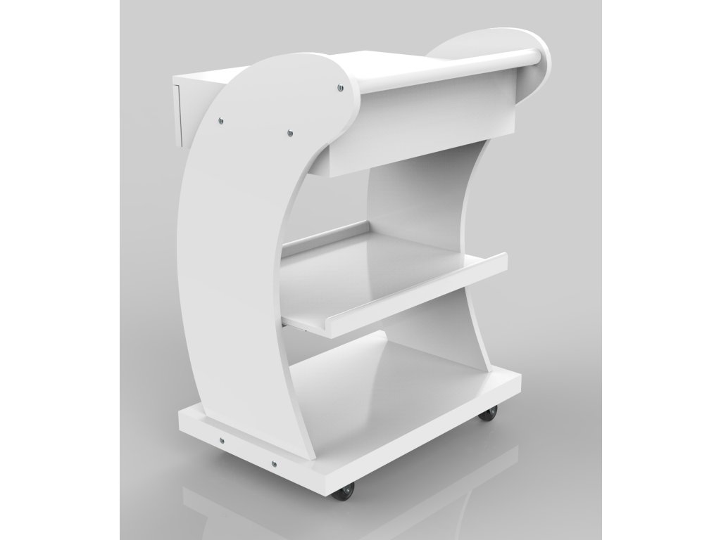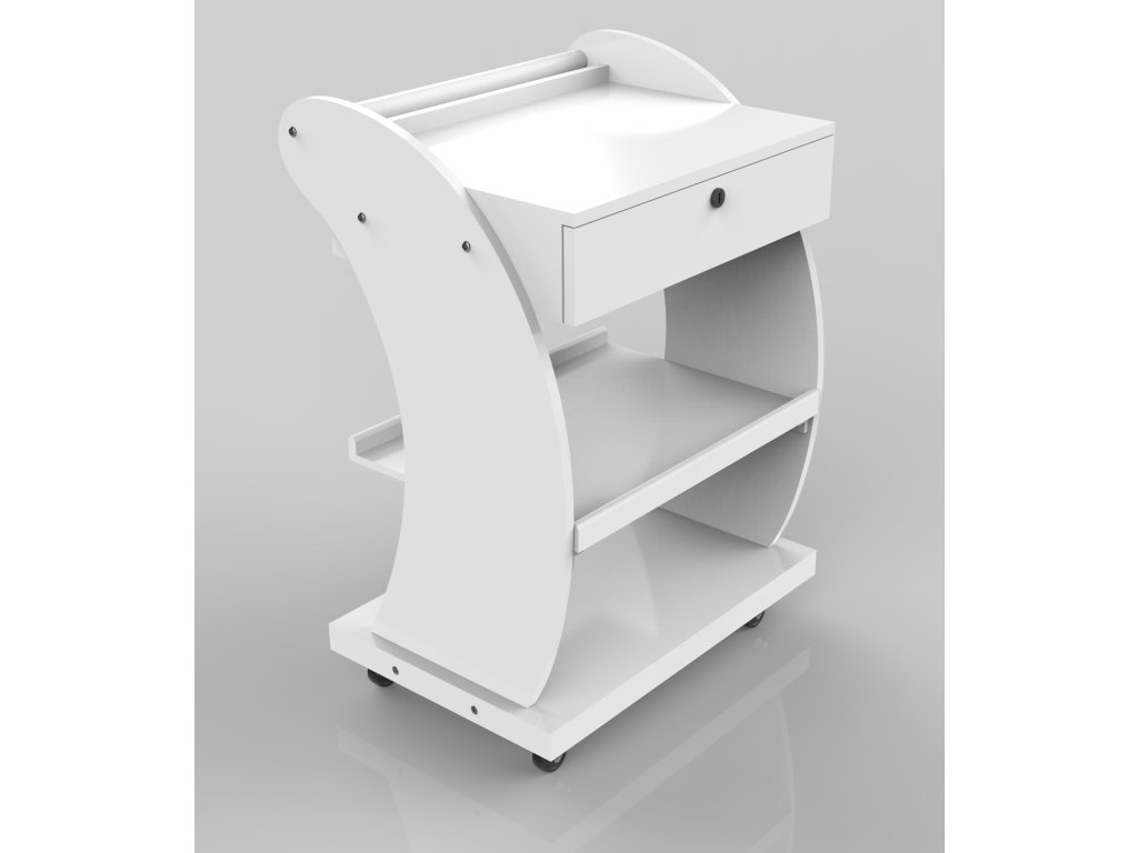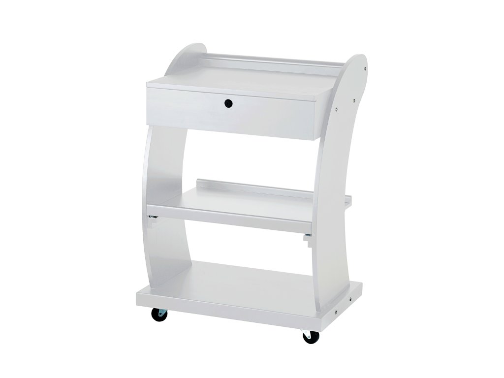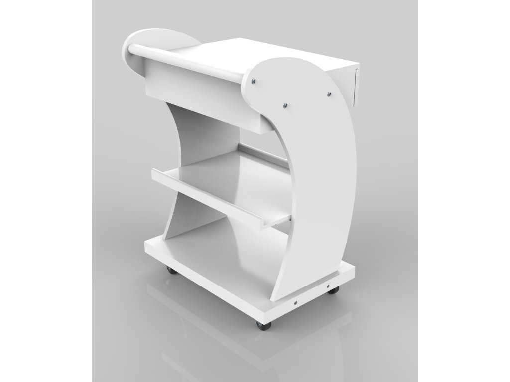 Elegantní stolek moderního designu. Praktická kolečka umožňují uživateli jednoduchou manipulaci.