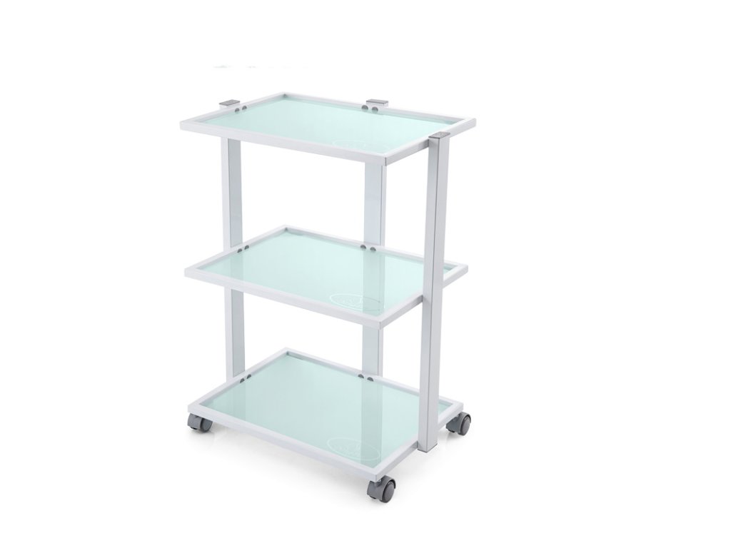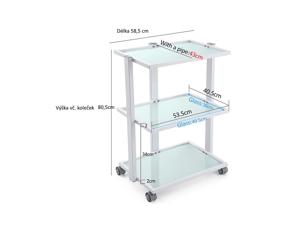 Pěkně zpracovaný stylový stolek se třemi skleněnými poličkami. Tento všestranně využitelný stolek je vhodný jak do kadeřnictví, tak do salonů pro pedikúru a manikúru.