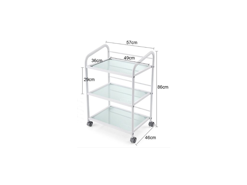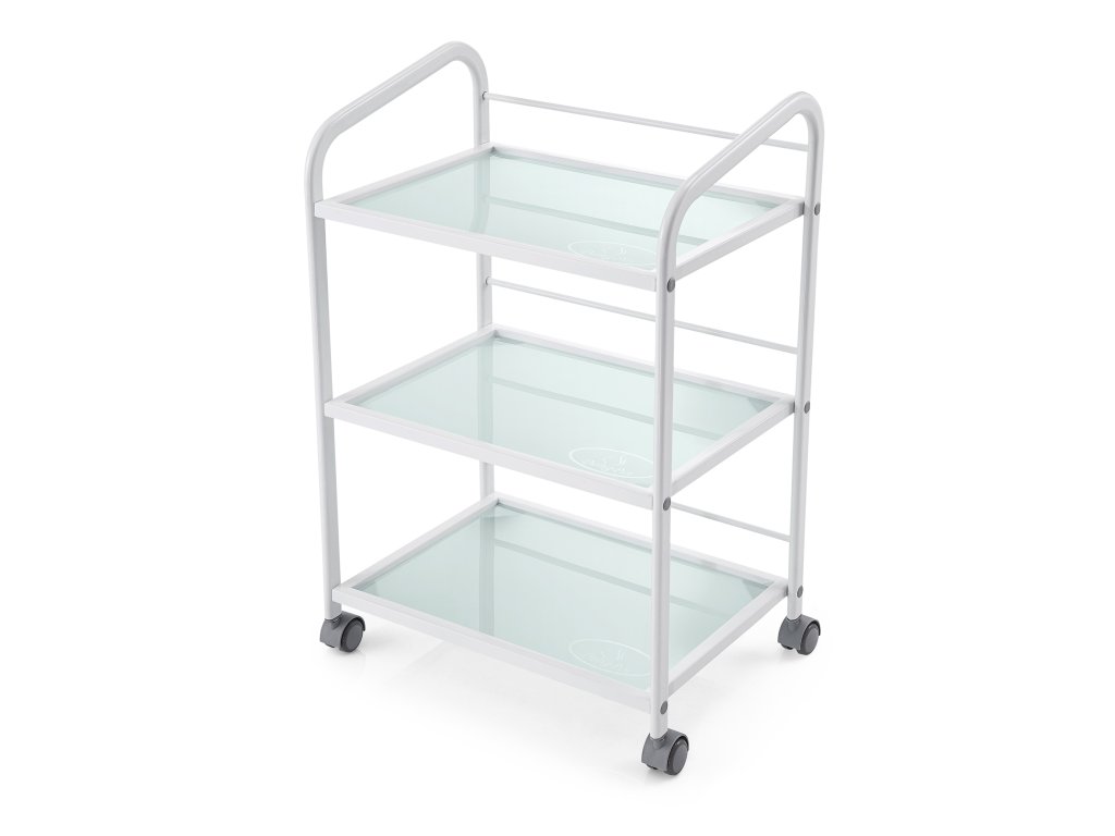 Pěkně zpracovaný stylový stolek se třemi skleněnými poličkami. Tento všestranně využitelný, stolek je vhodný jak do kadeřnictví, tak do salonů pro pedikúru a manikúru.