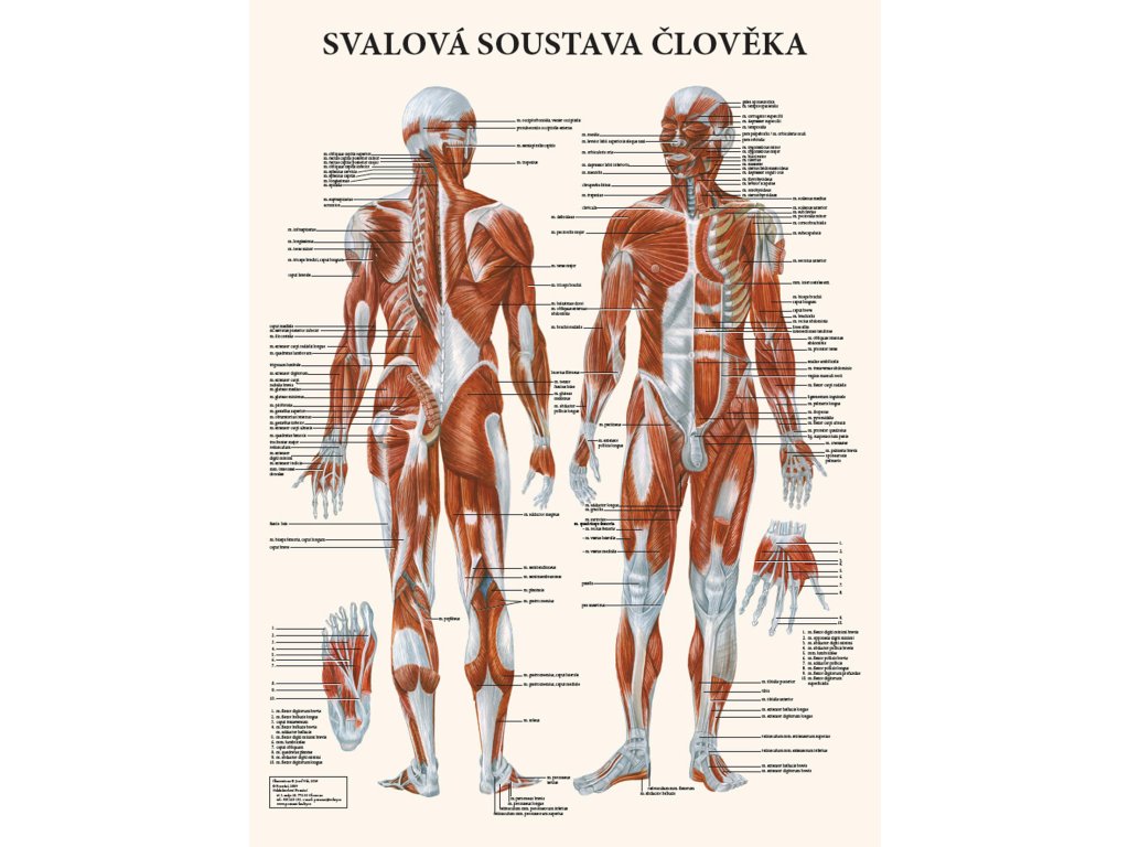 Přehledná mapa svalové soustavy člověka s latinskými popisky. Velikost 48x70cm.
