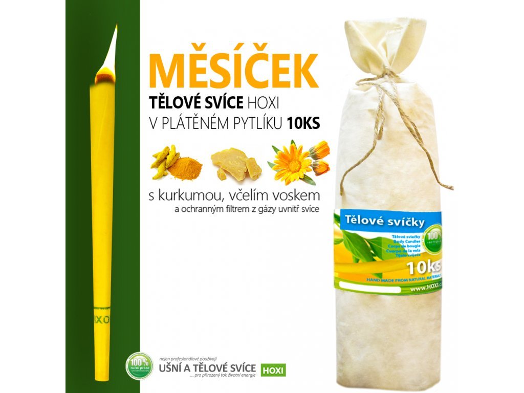 SLOŽENÍ TĚLOVÝCH SVÍČEK HOXI: Tělové svíčky HOXI jsou vyrobeny zásadně ručně z kvalitního českého včelího vosku, kosmetického vosku (parafinu s velmi nízkým obsahem oleje), přírodního barviva (kurkumy) a 100% bavlněného plátna. Tělové svíčky nejsou zdravotnickým materiálem, ale výjímečným nástrojem lidového léčitelství používaným již pradávna různými národy a kulturami.