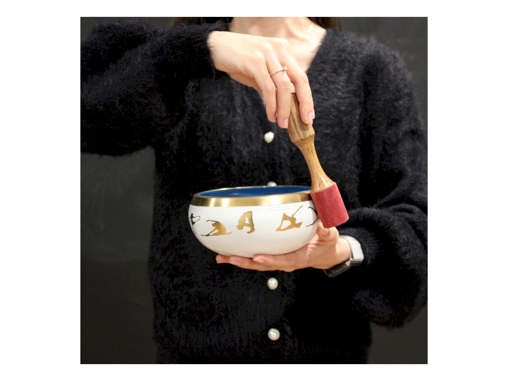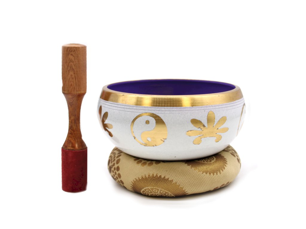 Tibetská zpívající miska – velká sada Yin & Yang, bílá/fialová, 14 cm