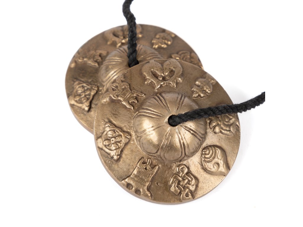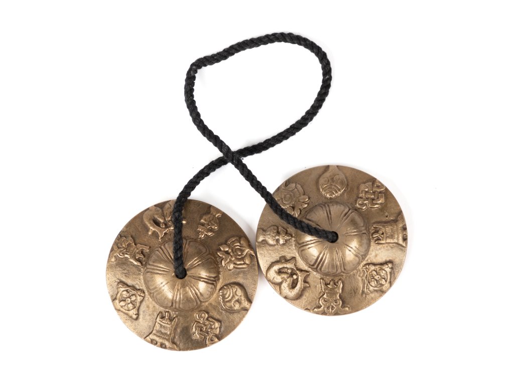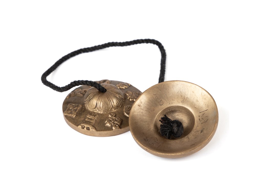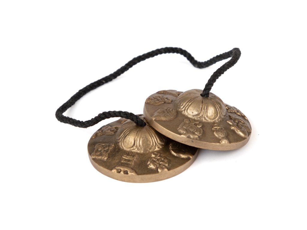 Tibetské činely s ornamenty mají dlouhou tradici v buddhistických ceremoniích a rituálních obětech. V Indii se používají také jako doprovod k tradičním lidovým písním (Bhajans). Činely vydávají krásný, vysoký a čistý tón, který je vnímán především v oblasti hlavy. Jasný zvuk má podporovat bdělost, jasno a koncentraci.
