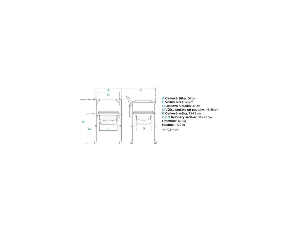 Celková šířka: 56 cm Vnitřní šířka: 46 cm Celková hloubka: 47 cm Výška sedáku od podlahy / celková výška: 46–56 cm / 73–83 cm Rozměry sedáku: 38 × 40 cm Nosnost: 120 kg Barva: světle šedá