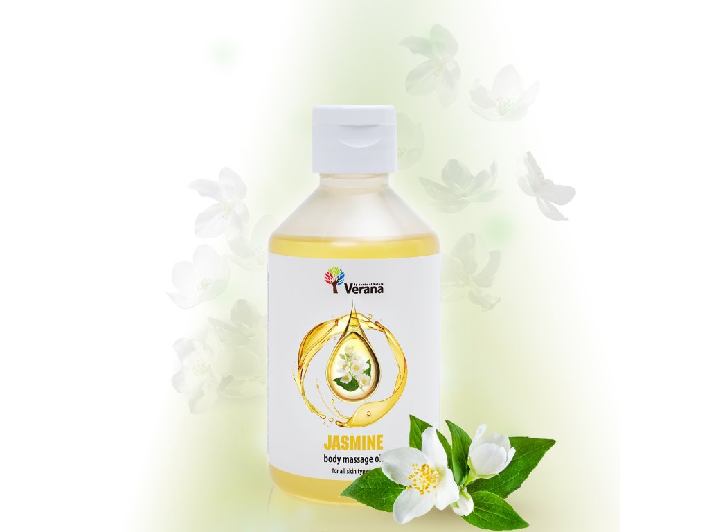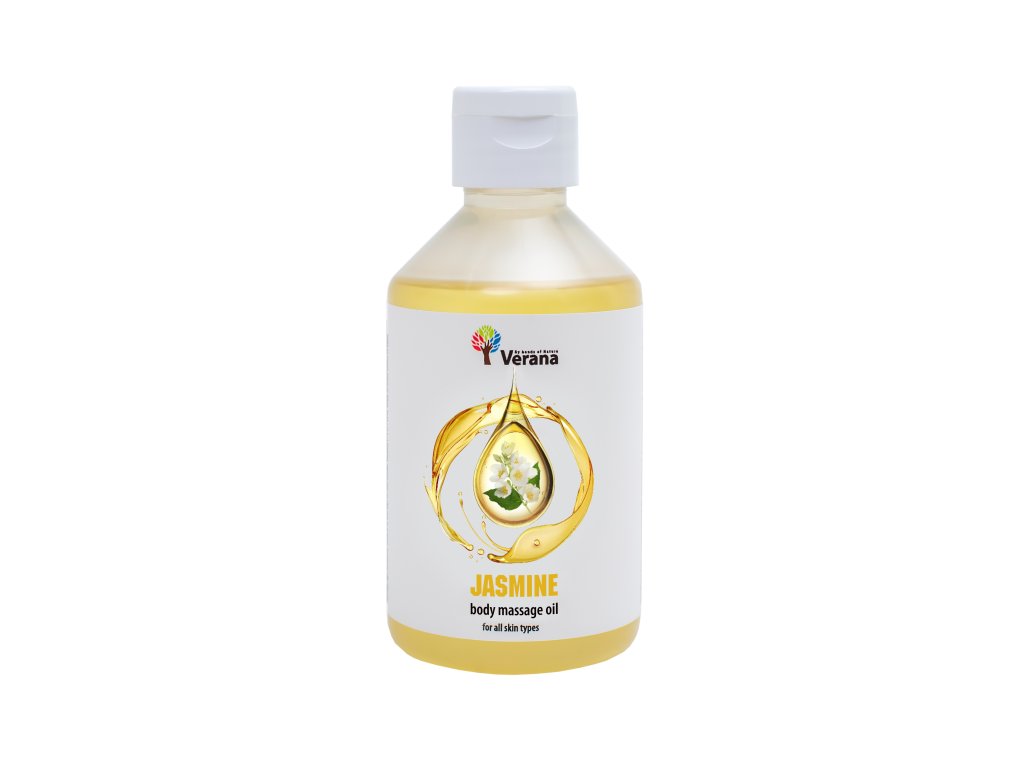 Masážní olej Jasmín obsahuje: řepkový olej, hroznový olej, mandlový olej, výtažek z kořenového oleje ze zázvoru, výtažek z květu jasmín, éterický olej Ylang-Ylang, éterický olej z růží, tokoferol.