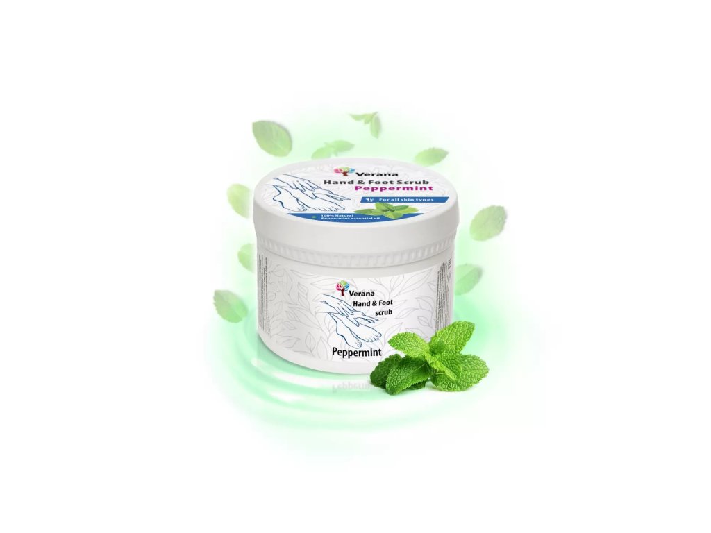 Při péči o ruce a nohy peeling na ruce a nohy Máta jemně odstraňuje svrchní drsnou vrstvu pokožky, zvyšuje krevní oběh, zjemňuje drsnou pokožku, zlepšuje elasticitu pokožky, redukuje jemné vrásky a omlazuje pokožku. Peeling během procedury osvěžuje a tonizuje pokožku, pomáhá zpomalovat proces stárnutí pokožky, stimuluje lymfatický systém, zpevňuje nehtovou plotýnku, zlepšuje celkový stav pokožky, zjemňuje a zjemňuje pokožku rukou a nohou.
