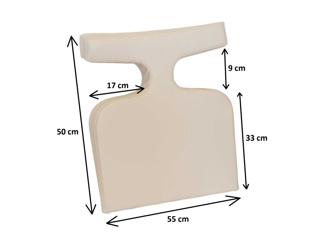 tloušťka polstrování - 3 cm v nejnižším bodě (spodní část), tloušťka postupně stoupá až do 8 cm v nejvyšším bodě (u hlavy)