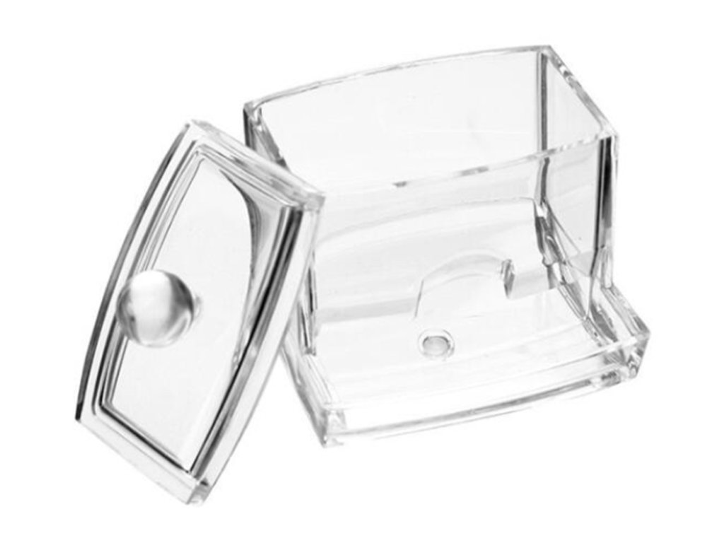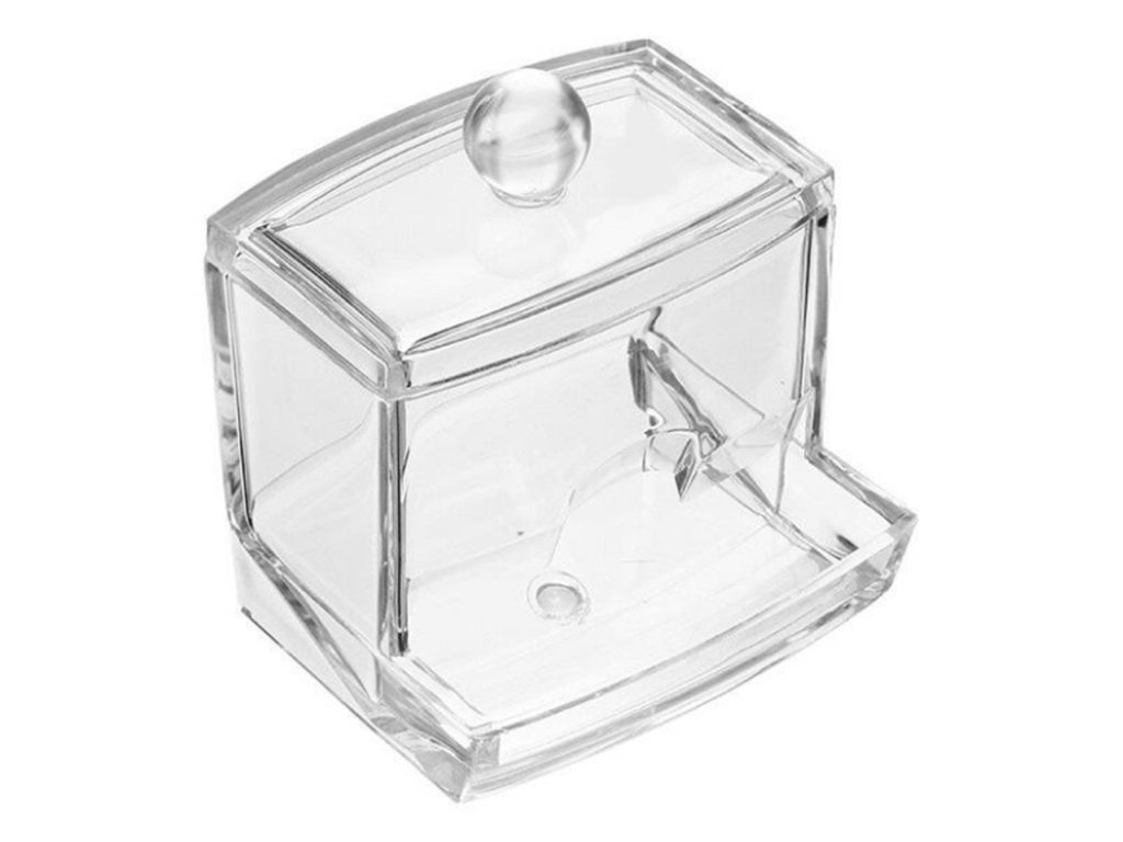 Praktický zásobník na vatové tyčinky. Vyrobeno z odolného, průhledného plastu. Organizér má otevřenou štěrbinu, která usnadňuje vyzvednutí tyčinek. Součástí je také odnímatelné horní víko s rukojetí.